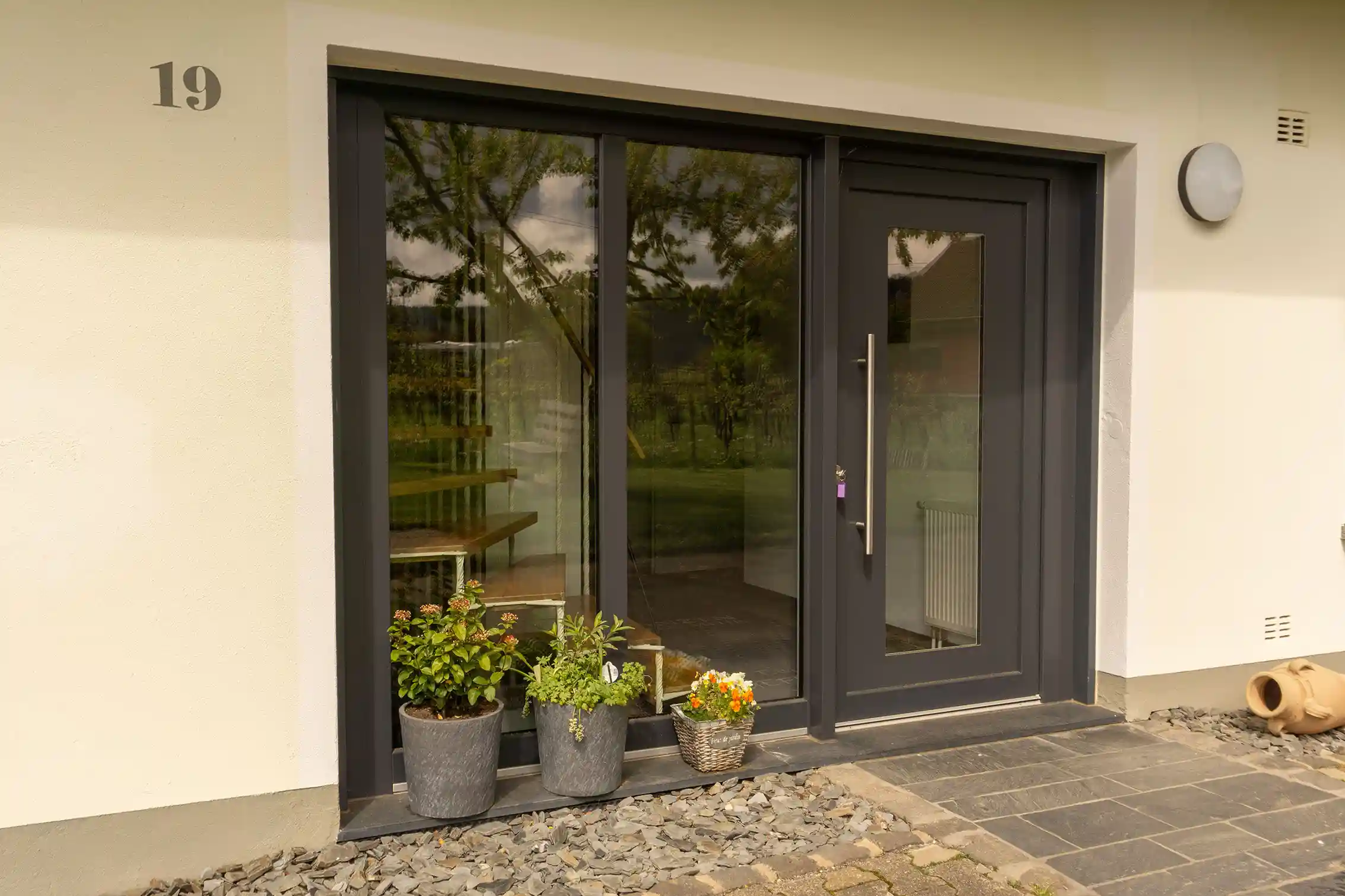 Die im Erdgeschoss befindlichen Apartments verfügen über eine Terrasse, die im Dachgeschoss gelegenen über einen Balkon.